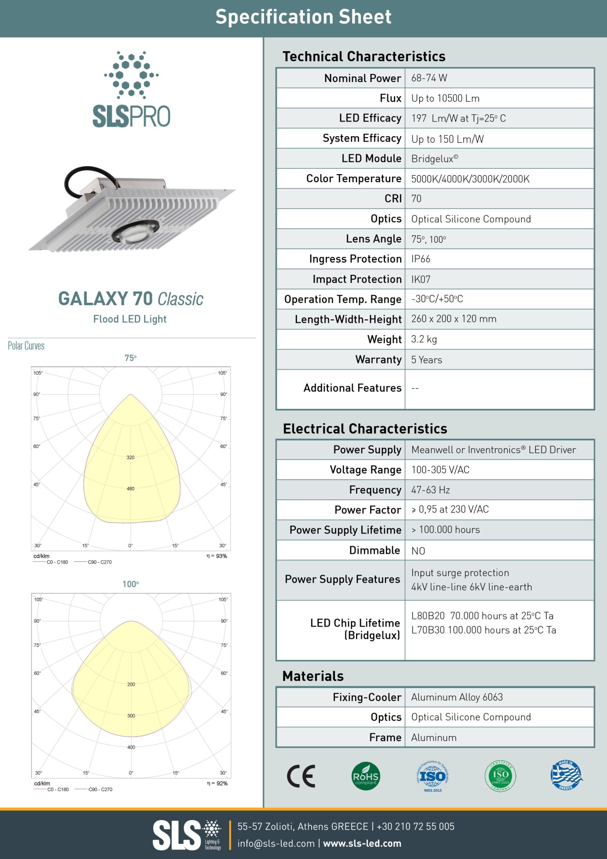 O Galaxy 70 είναι προβολέας τεχνολογίας LED, που συνδυάζει την αντοχή, την υψηλή απόδοση και την αξιοπιστία.