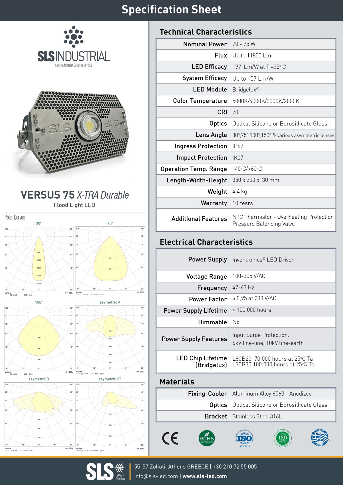 O Versus 75 X-TRA Durable είναι προβολέας τεχνολογίας LED, που συνδυάζει την αντοχή, την υψηλή απόδοση και την αξιοπιστία.