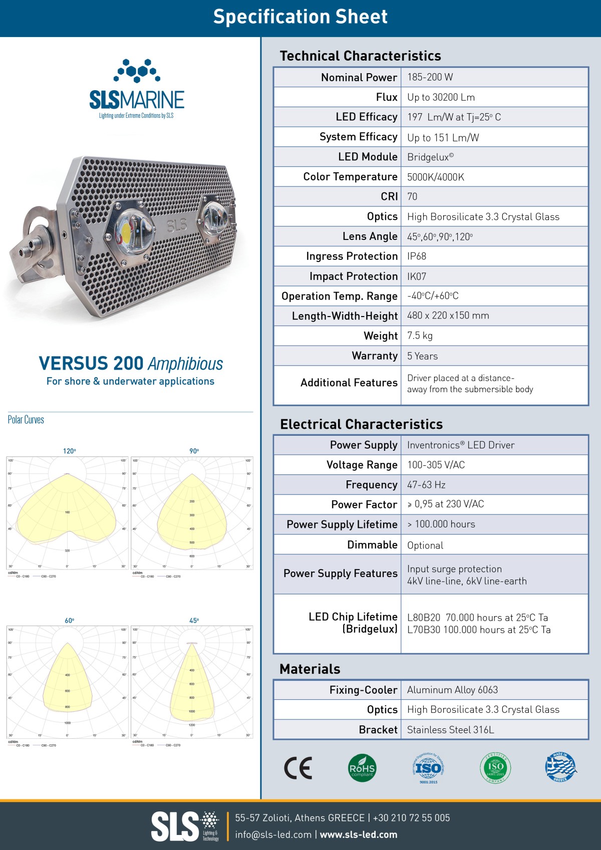 O Versus 200 Amphibious είναι προβολέας τεχνολογίας LED, που συνδυάζει την αντοχή, την υψηλή απόδοση και την αξιοπιστία.