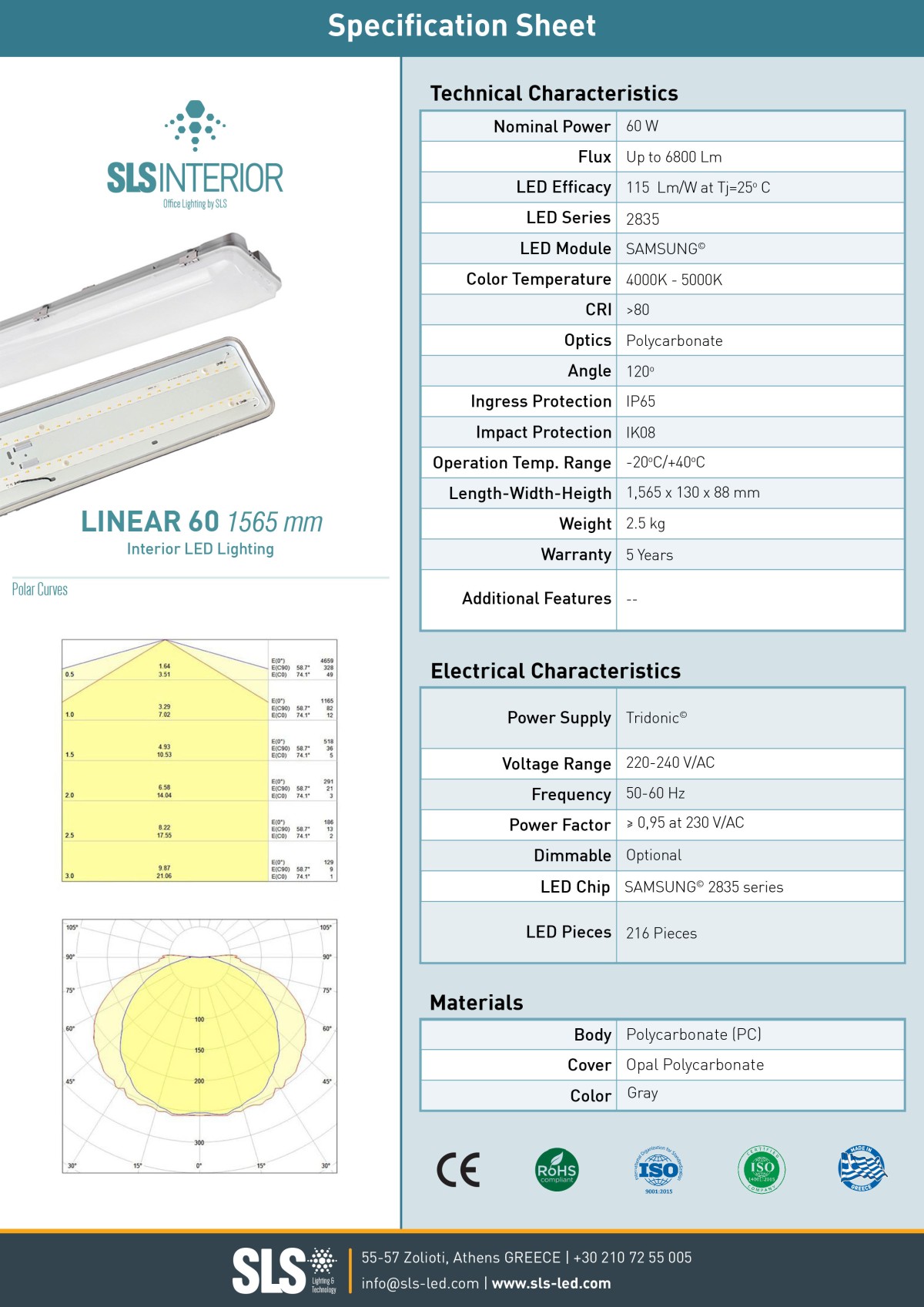 Το Linear 60 Watt είναι ένα φωτιστικό νέας γενιάς, με κομψή σχεδίαση και φωτισμό υψηλής απόδοσης που συνδυάζει την τελευταία τεχνολογία Led chip της Osram, τα υψηλής ποιότητας τροφοδοτικά της Osram, με την πρωτοποριακή κατασκευή πολυκαρβονικού Trirex υψηλής αντοχής. Ο πρωτοποριακός σχεδιασμός του Linear ενσωματώνει εξαιρετική θερμοαγωγιμότητα και χαμηλή θερμοκρασία λειτουργίας LED, εξασφαλίζοντας μακροζωία και σταθερή υψηλή απόδοση. Το γραμμικό φωτιστικό Linear έχει σχεδιαστεί για να ικανοποιεί τα πιο απαιτητικά κριτήρια προδιαγραφών, προσφέροντας παράλληλα μέγιστη εξοικονόμηση ενέργειας, μηδενικό κόστος συντήρησης και ανώτερη ποιότητα φωτισμού.