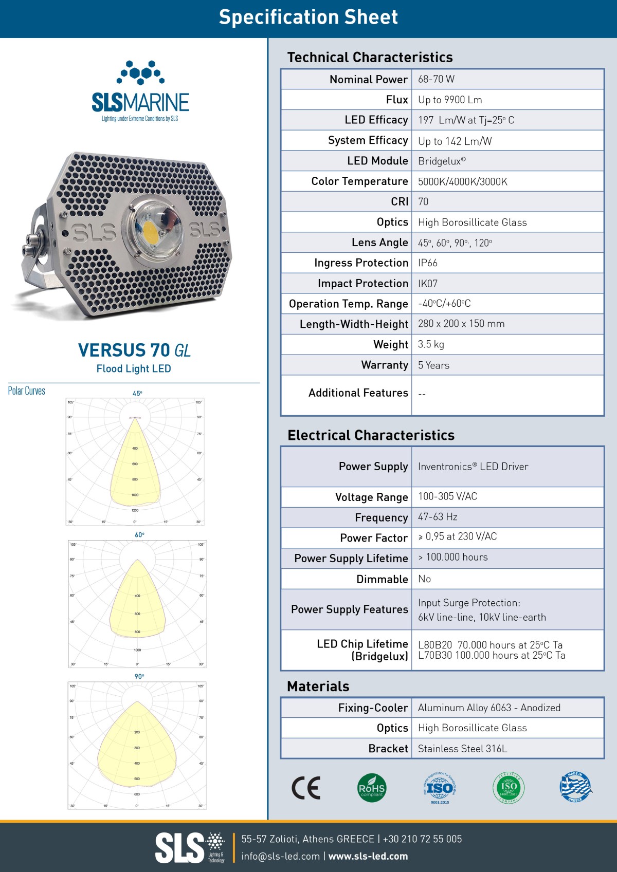 O Versus 70 GL είναι προβολέας τεχνολογίας LED, που συνδυάζει την αντοχή, την υψηλή απόδοση και την αξιοπιστία.