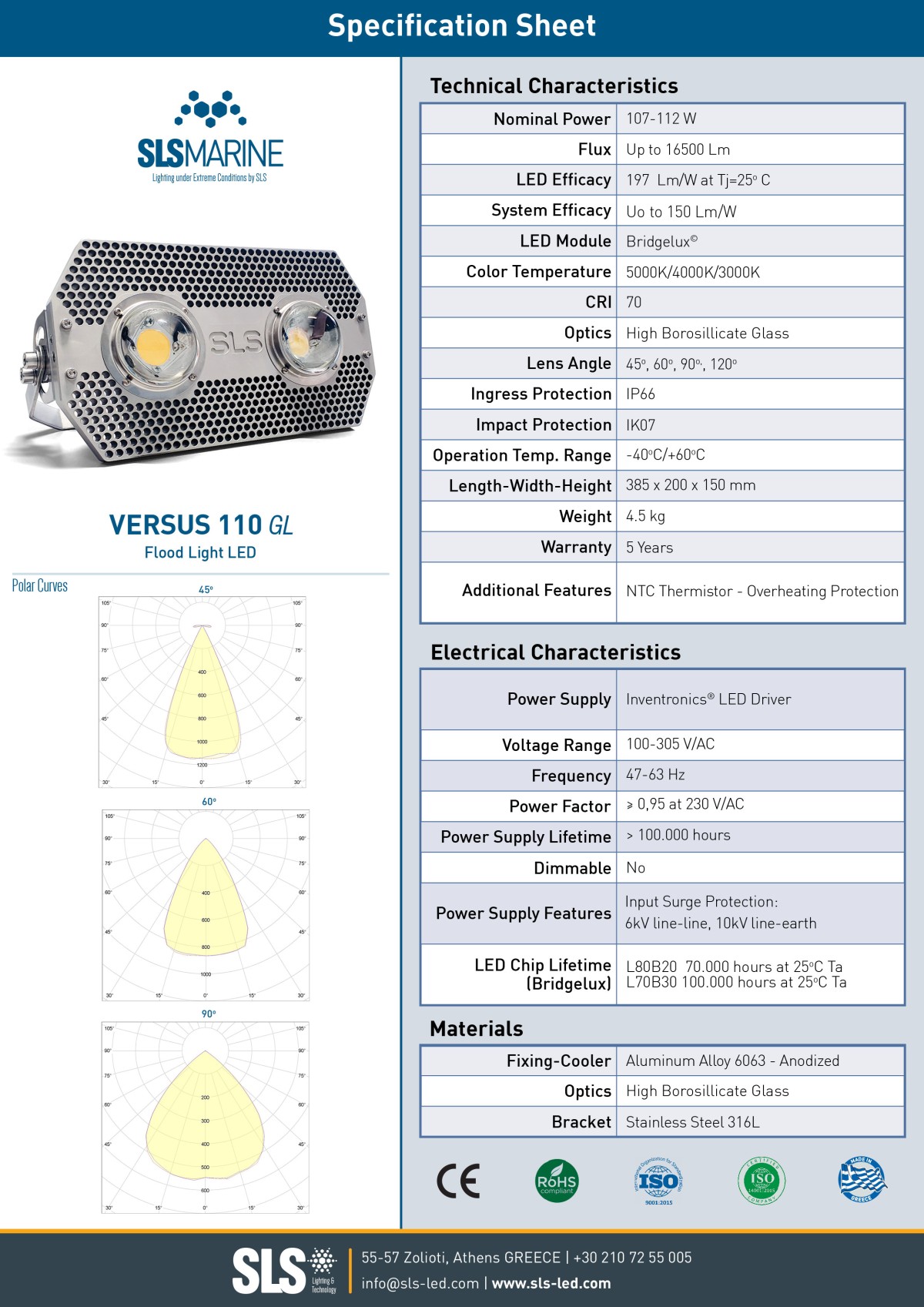 O Versus 110 GL είναι προβολέας τεχνολογίας LED, που συνδυάζει την αντοχή, την υψηλή απόδοση και την αξιοπιστία.